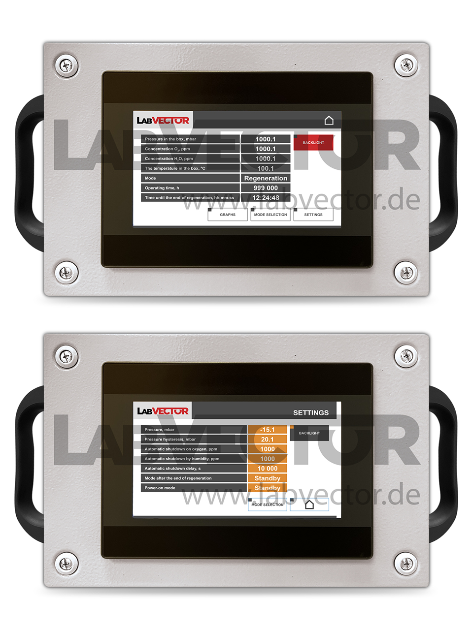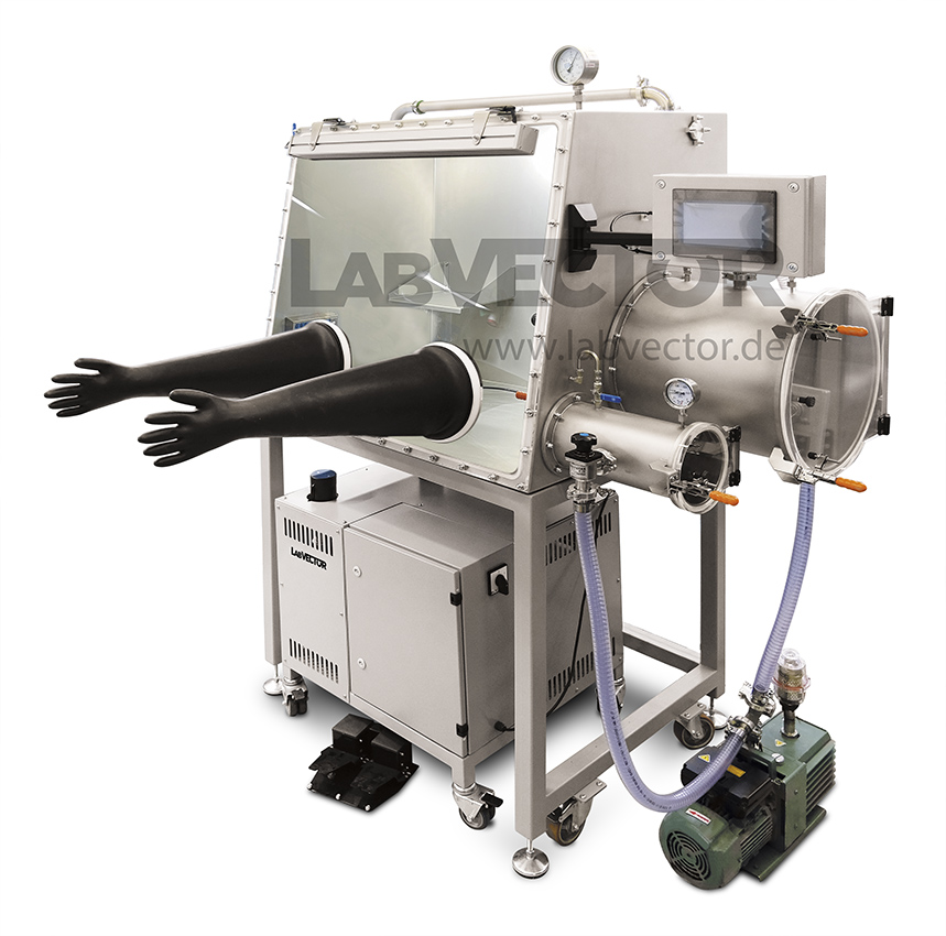 LabVECTOR VPURE gas purification systems are designed for purifying inert gases (nitrogen, argon, helium) in glove boxes and similar setups (titanium welding chambers, SLM 3D printers) from traces of oxygen and moisture to values of less than 1 ppm. Optional organic solvent vapor removal unit can be included. VPURE systems utilize a regenerable combined chemisorption purification method with sealed columns of absorbents. The regeneration is fully automated. When operating with a glove box, VPURE system also performs the following functions: measuring oxygen concentration, measuring water vapor concentration, controlling the pressure in the box, controlling the box lighting system, controlling the gate operation (if the gate is equipped with electromagnetic or electro-pneumatic valves), controlling the thermal vacuum treatment in the gate. VPURE gas purification systems are developed by LabVECTOR and manufactured in Hamburg using high-quality materials and components from leading global manufacturers.